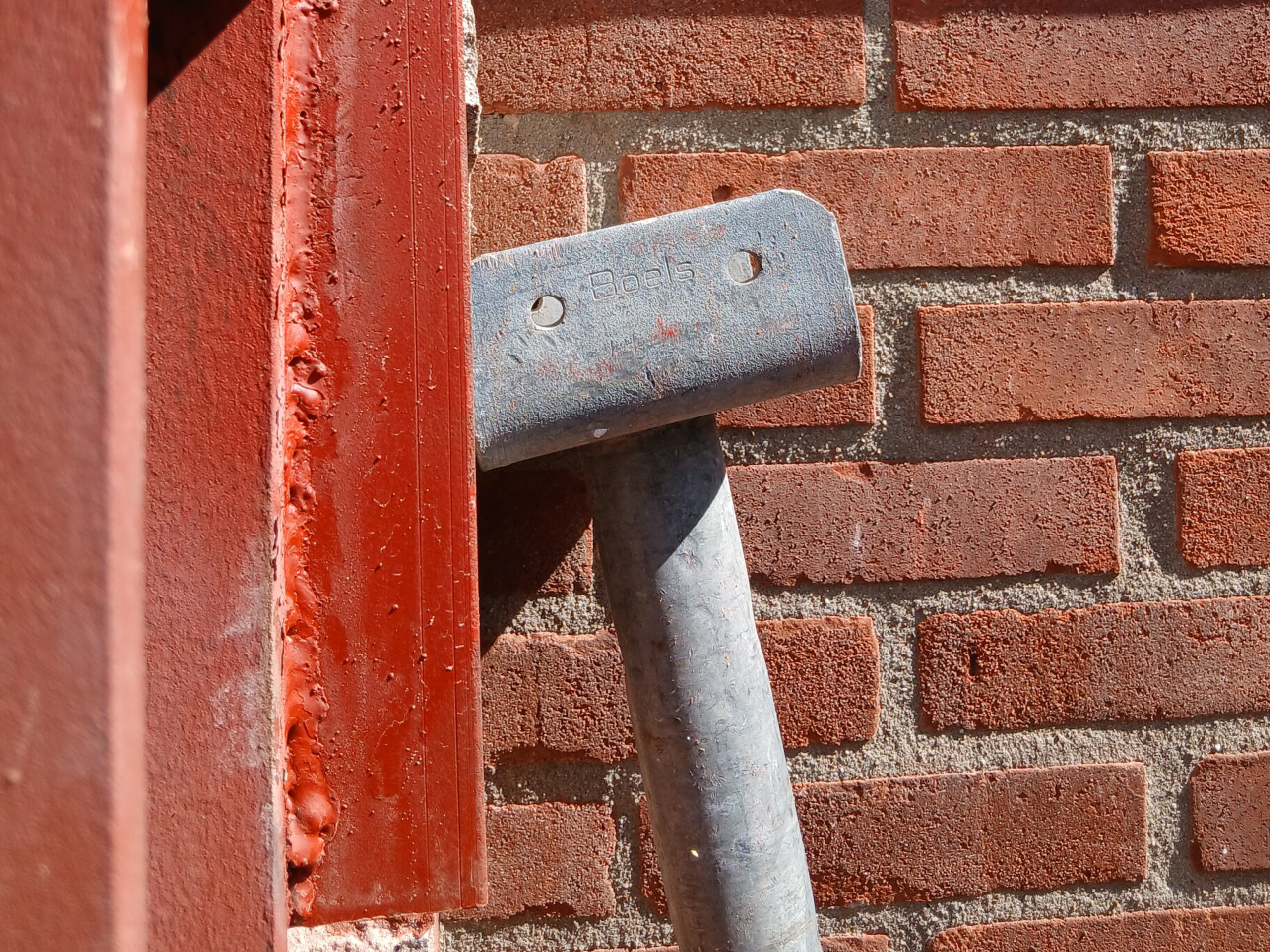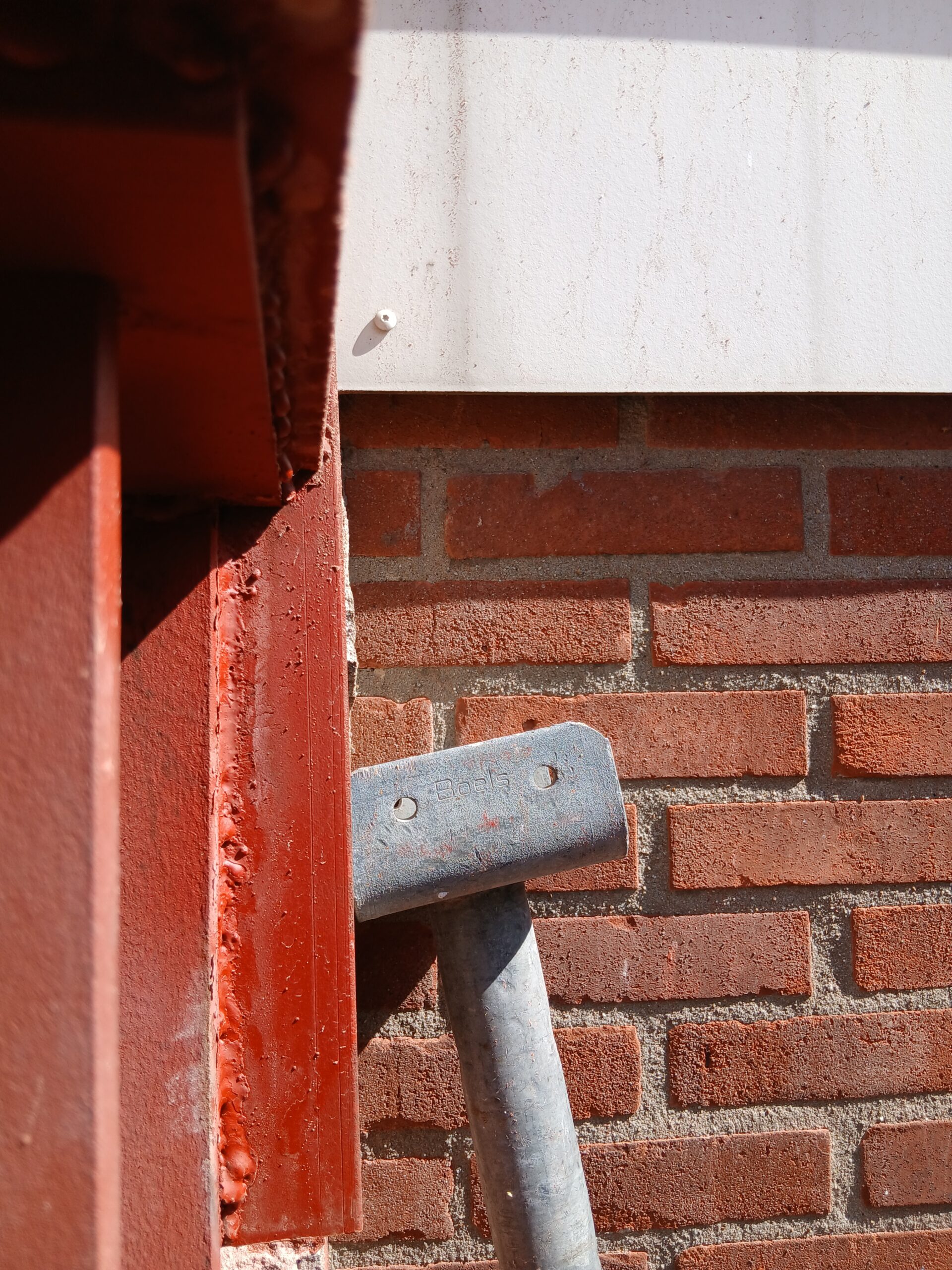 Portaal staat vast recht, maar aansluitplaat niet en maakt aansluiten muur onmogelijk.