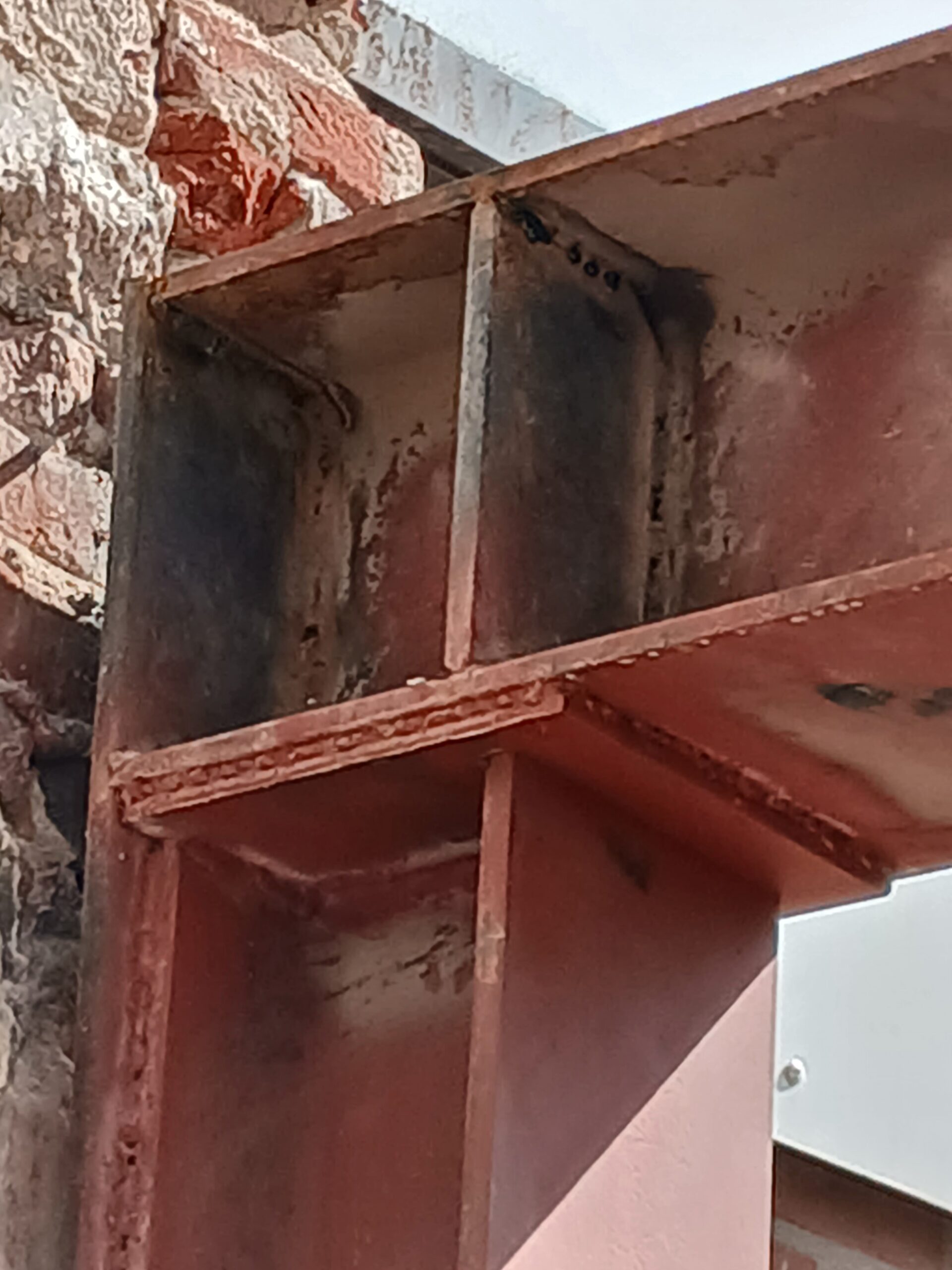 Flens nog deel betonplaat, precies op ongelukkige plek (vocht).